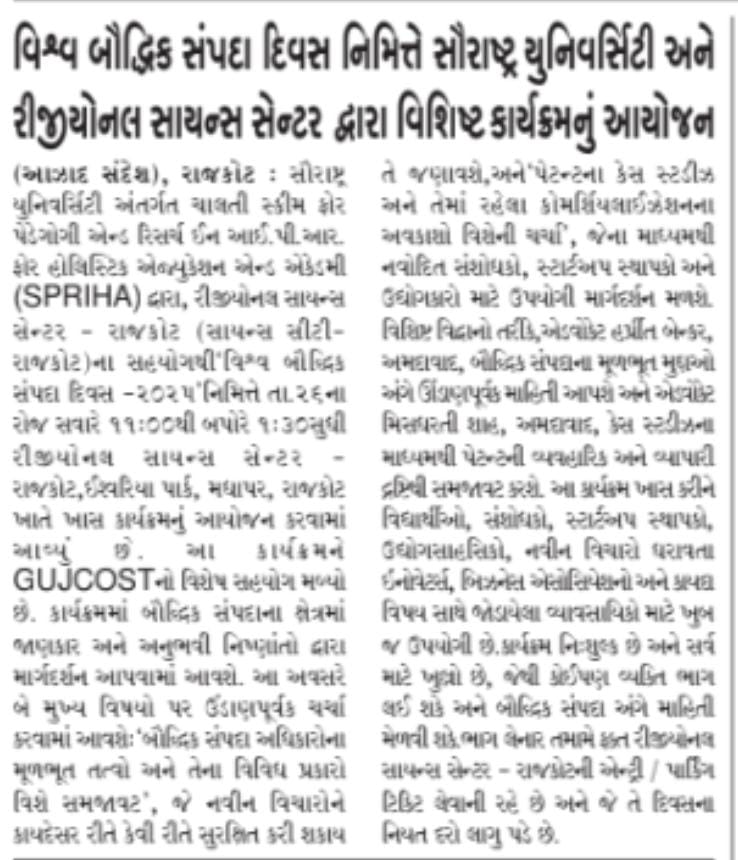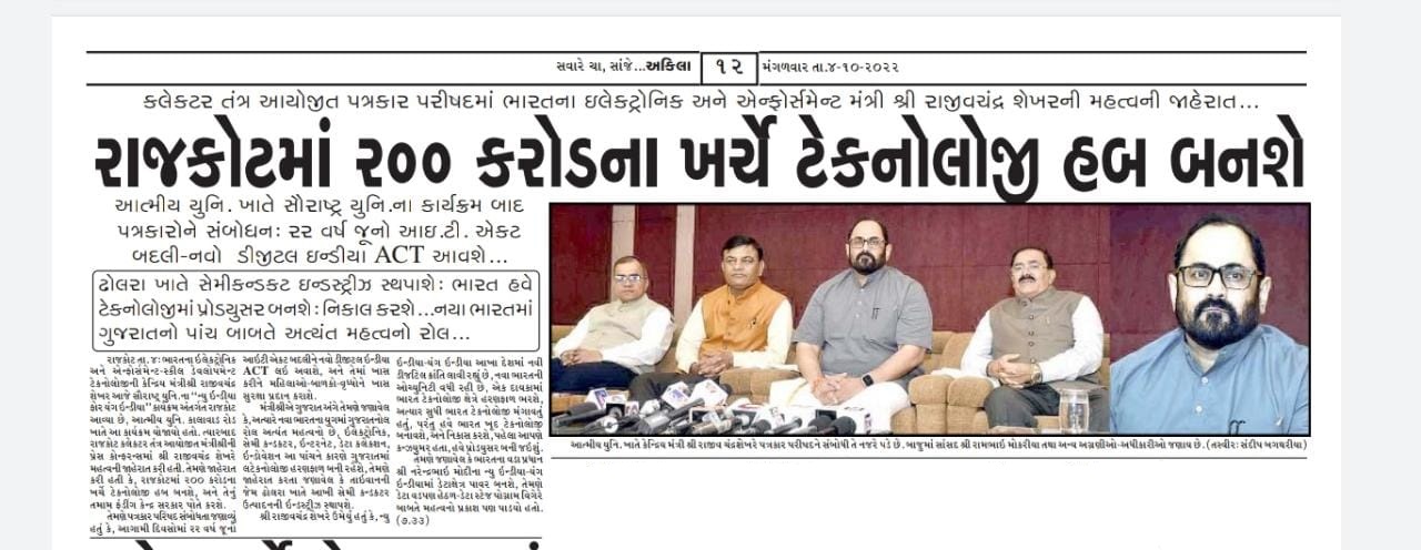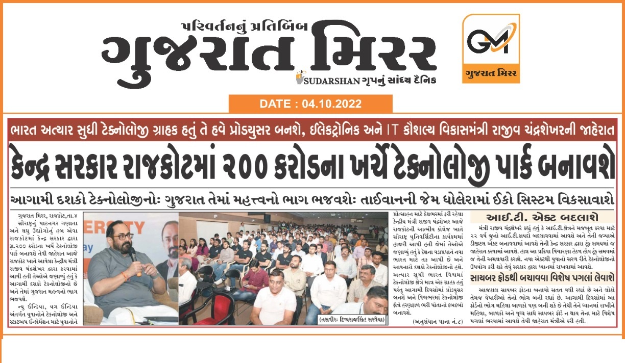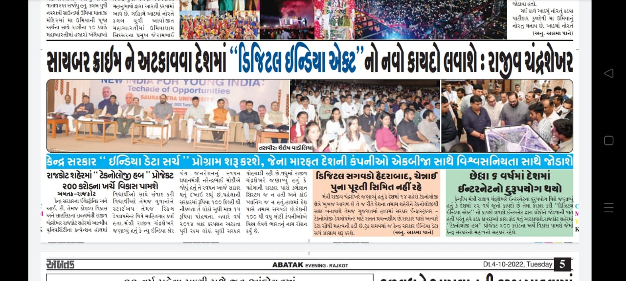 Gujarat Mirror - The event "New India for Young India: Techade for Opportunities" was organized by Saurashtra University on 4th october 2022 at Atmiya university