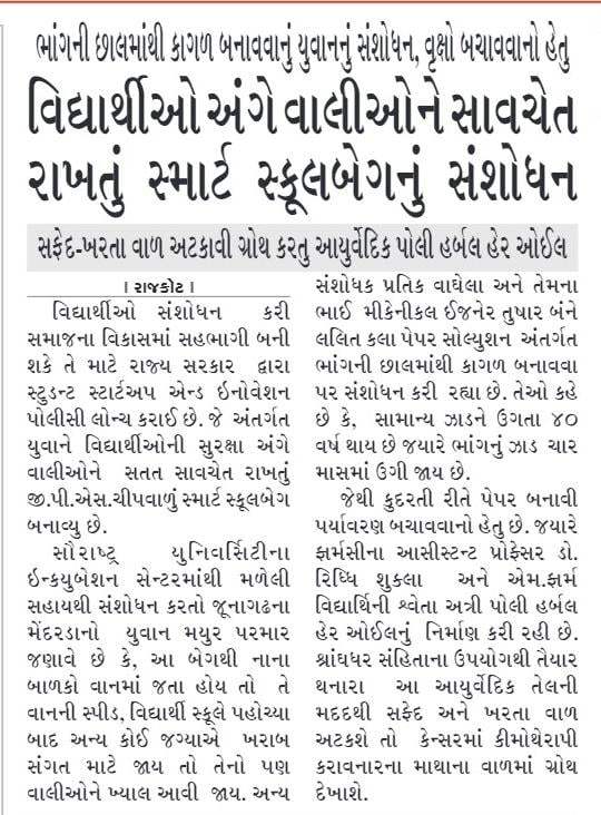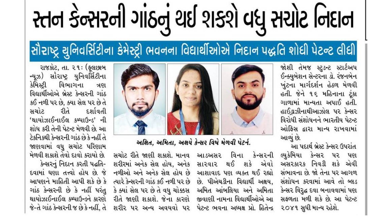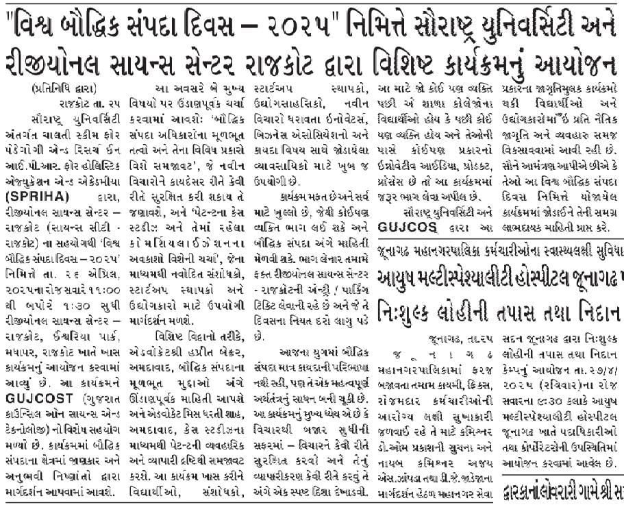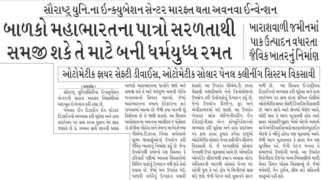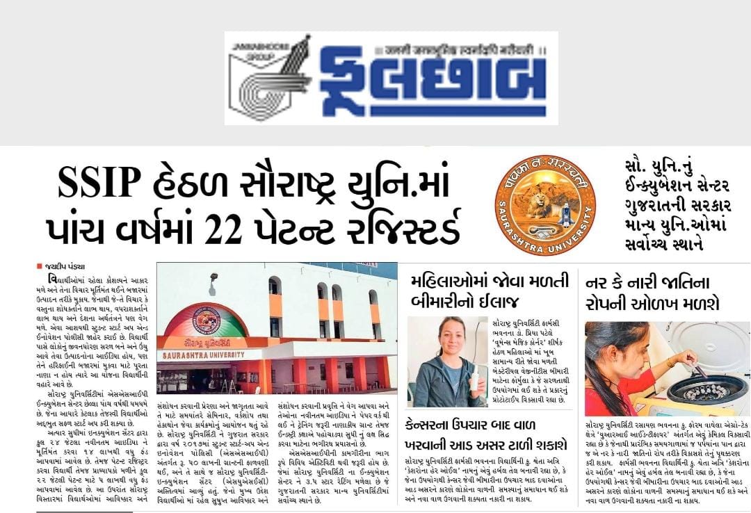 sandesh - Grant received from Nodal Institution to Incubation Center of Saurashtra University