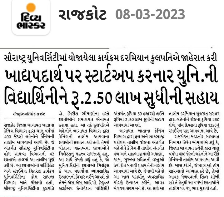 Divya Bhasker- Assistance of up to Rs 2.50 lakh to a university student doing a food startup
