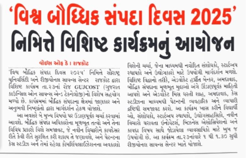 World IP Day celebration - Intellectual Properties for Innovation And Startup - Dr. Unnat Pandit - Abtak - 26/04/2022