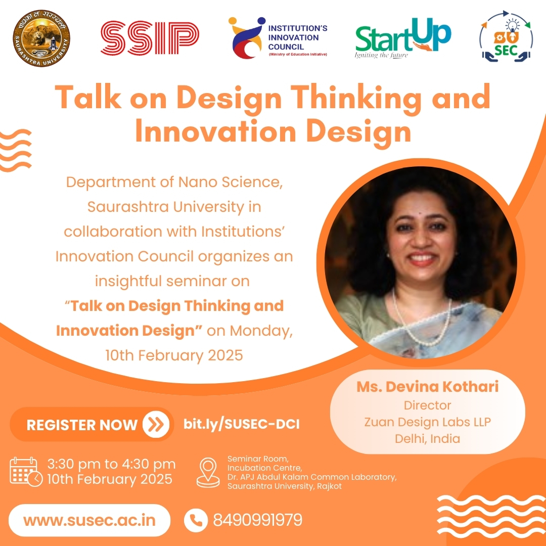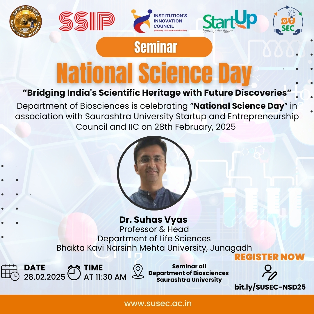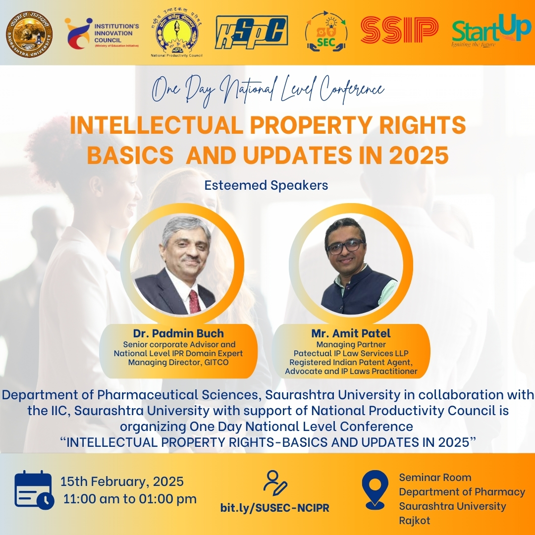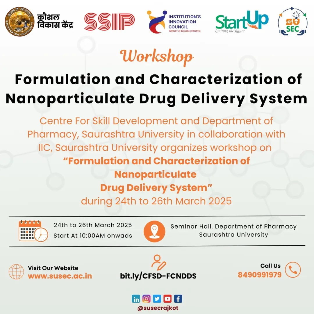 Centre For Skill Development and Department of Pharmacy, Saurashtra University in collaboration with IIC, Saurashtra University organizes workshop on “Formulation and Characterization of Nanoparticulate Drug Delivery System” during 24th to 26th M