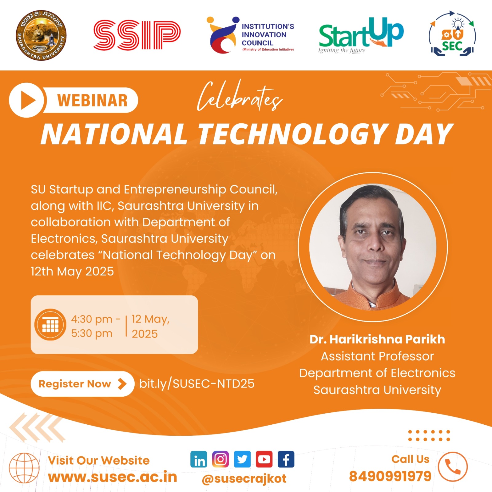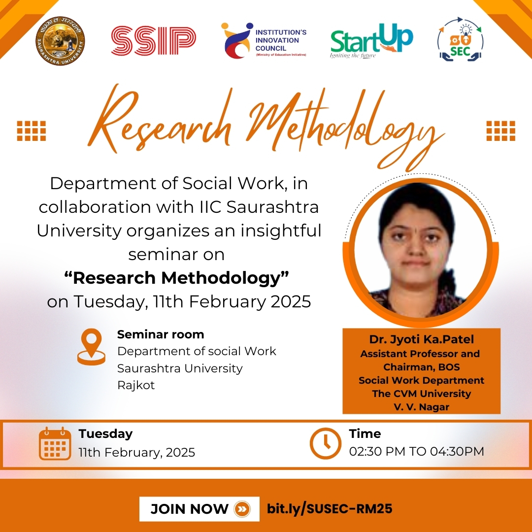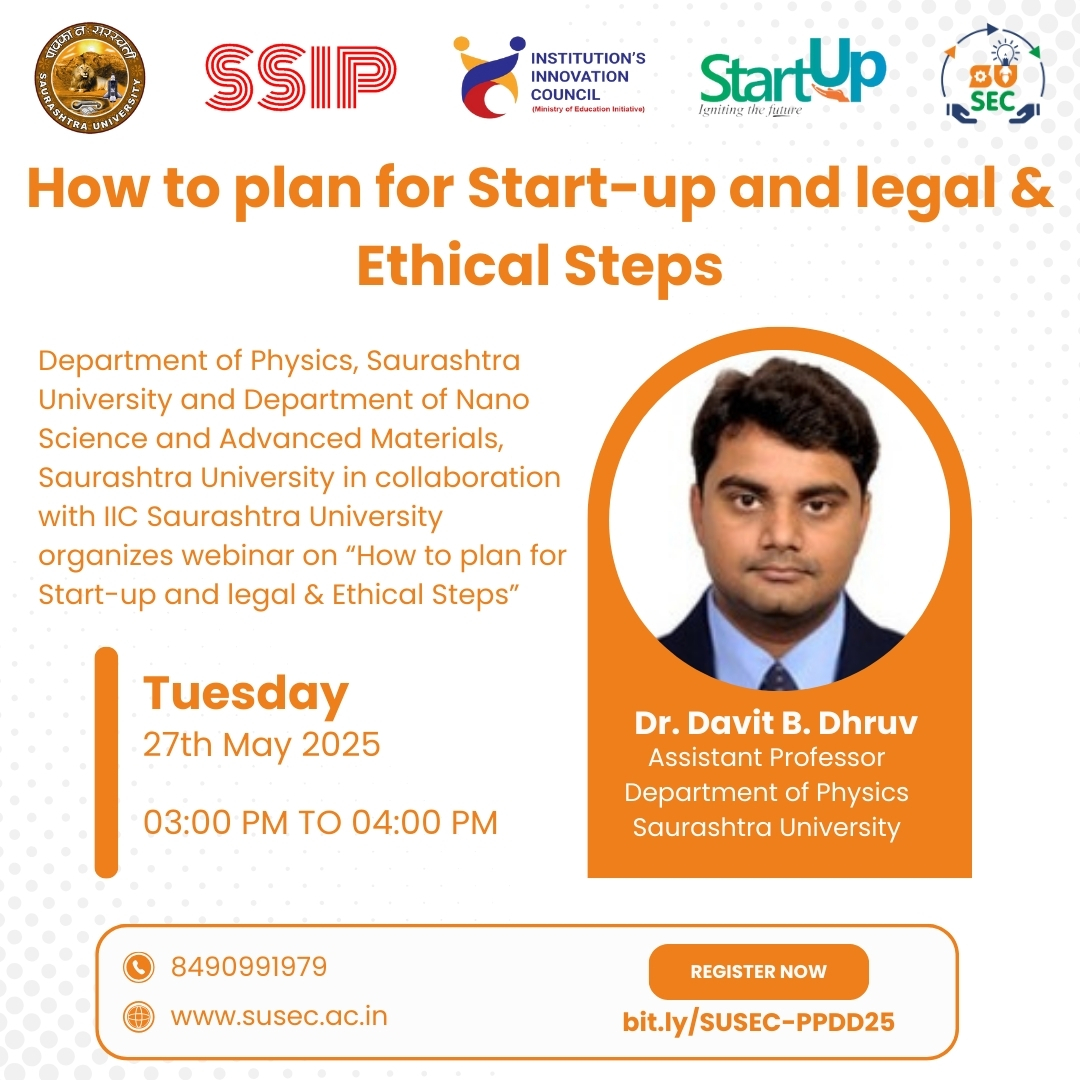 Centre For Skill Development and Department of Pharmacy, Saurashtra University in collaboration with IIC, Saurashtra University organizes workshop on “Formulation and Characterization of Nanoparticulate Drug Delivery System” during 24th to 26th M
