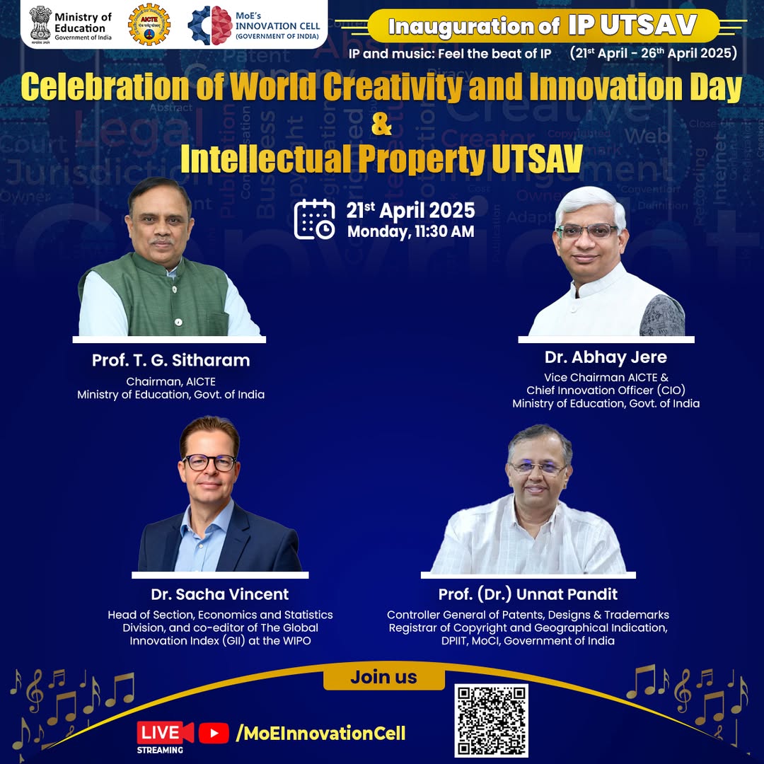 celebrating World Intellectual Property Day with a week-long series of online expert masterclasses under the banner of IP UTSAV (21st to 26th April 2025 11:30AM to 01:30 PM)